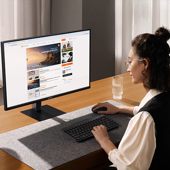 מסך מחשב UHD 4K עם פנל IPS בגודל 27 אינצ' מבית שיאומי, ביחס מימדים 16:9 עם שוליים צרים במיוחד בהתאמה לחוויית שימוש עם מס' מסכים במקביל.