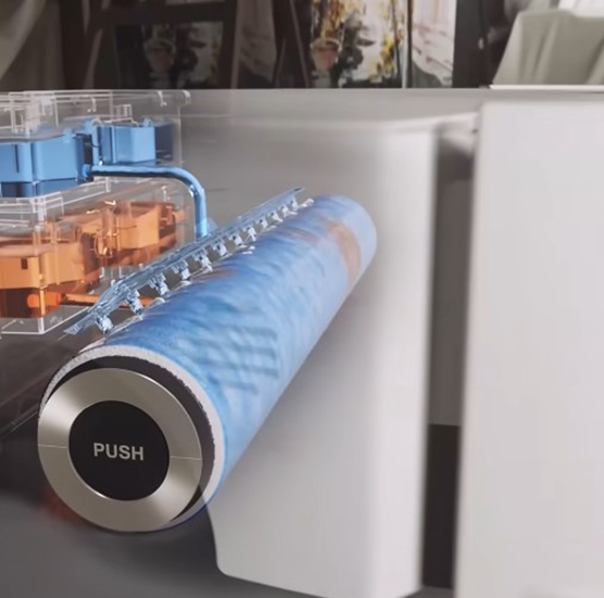 טכנולוגיית ניקוי ™AquaRoll - שואב את המים המלוכלכים שנספגו במברשת הרולר וגם מנקה את מברשת הרולר תוך כדי עבודה