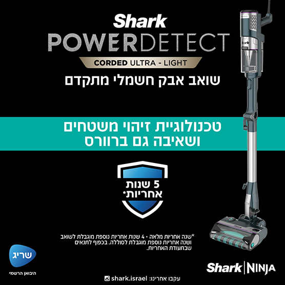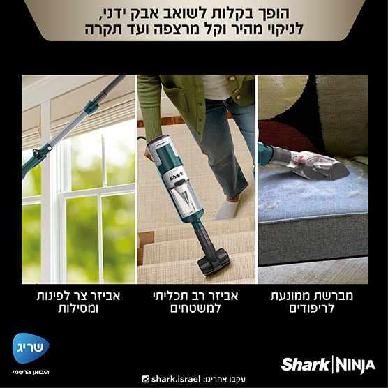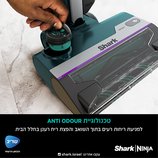 שואב Shark Power Detectאביזר צר לפינות ומסילותאביזר רב תכליתי למשטחיםמברשת ממונעת לריפודיםמחסנית ריח