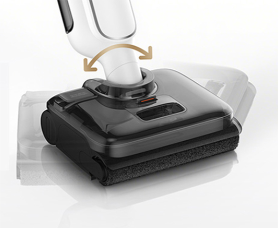 ראש מברשת המתוכנן לפינות וקצוות - בסיס השואב ועיצוב המברשת תוכננו להחלקה בצמוד לקיר ולפנלים, ובתנועה חלקה, לניקוי יסודי לאורך הקצוות, בפינות, במעברים צרים ובמדרגות; פתח היניקה הרחב (168°) אוסף ביעילות מים ביניקה חזקה ומכיל מגב מובנה לאיסוף יעיל של שאריות מים.