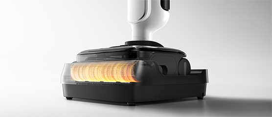 ייבוש באוויר חם 80°C - זרימת אוויר רציפה בטמפרטורה גבוהה של 80°C מייבשת ביעילות את מברשת הרולר, מונעת צמיחת עובש ומסלקת ריחות לא נעימים, בתהליך ייבוש מהיר (15 דקות בלבד) ושקט במיוחד 47dB(A). פלטת חימום מובנית בבסיס הטעינה והניקוי העצמי "מגהצת" את מברשת הרולר בטמפרטורה של 100C באמצעות לחץ מיקרו במצב ייבוש חם. בשילוב עם סיבוב קדימה ואחורה מלא (360°), מברשת הגליל מתייבשת ביעילות רבה יותר לקבלת רכות משופרת.