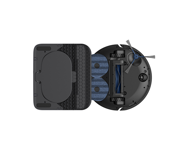 תחנת עגינה All-in-One: בסיום פעולת הניקוי של הבית, תחנת עגינה מרוקנת את מיכל האבק, שוטפת ומייבשת את המטליות באוויר בטמפרטורת החדר (כ-4 עד 6 שעות ייבוש) למניעת ריחות והתפתחות בקטריות. מיכל המים הנקיים בנפח 2.5 ליטר מספיק לשטיפה של עד 160 מ"ר, והסוללה תספיק עד 180 דקות של שימוש.