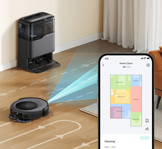 טכנולוגיית לייזר iPath לניווט ומיפוי: משמשת ליצירת מסלולי ניקוי יעילים ברחבי הבית או המשרד (לתוצאות אופטימליות, מומלץ להרחיק מהרצפה כבלים, גרביים וצעצועים לפני הפעלת השואב הרובוטי).