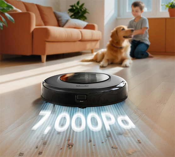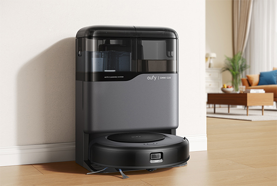 שואב אבק רובוטי שוטף Anker eufy Omni C20 עם עוצמת שאיבה 7,000Pa, טכנולוגיית לייזר iPath לניווט ומיפוי יעיל וניגוב בלחץ אדפטיבי עם זוג מטליות מסתובבות להסרת לכלוך וכתמים קשים.