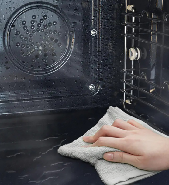 התכונה יוצרת אדים שמרככים את חלקיקי המזון, כדי שתוכלו לנגב ולהסיר את כל השאריות בלי לקרצף – ולקבל תנור מבריק ונקי.
