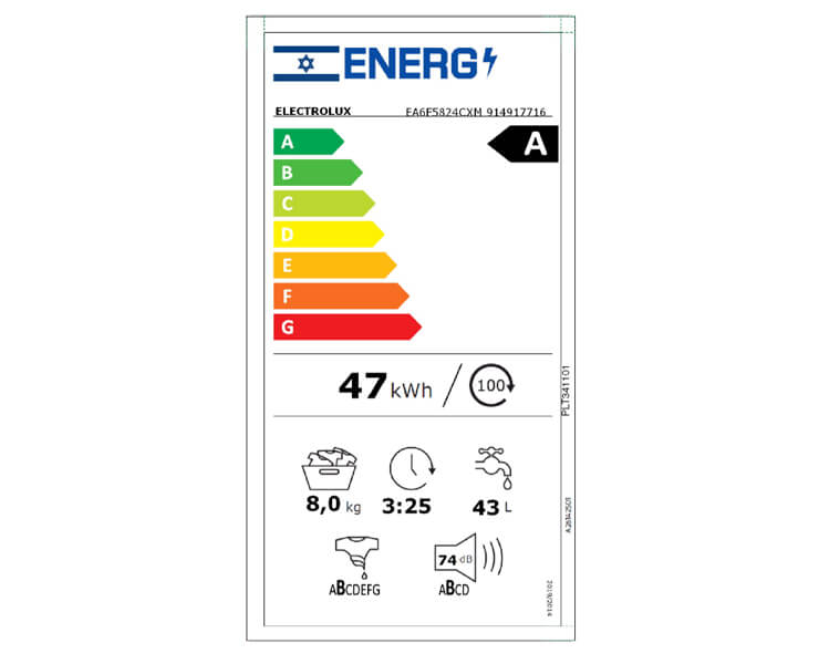 מכונת כביסה EA6F5824CXM מבית Electrolux בקיבולת 8 ק"ג והספק 2000W , גוף חימום פלטינום בליטוש יהלום, מהירות סחיטה 0-400-600-800-1000-1200 סל"ד ומגוון תוכניות כביסה.