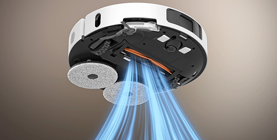 זיהוי שטיחים אוטומטי באמצעות חיישן מובנה בשואב הרובוטי והרמת מטליות באופן אוטומטי להימנעות מהרטבת ולכלוך השטיח1 ומניעת זיהום משני.
