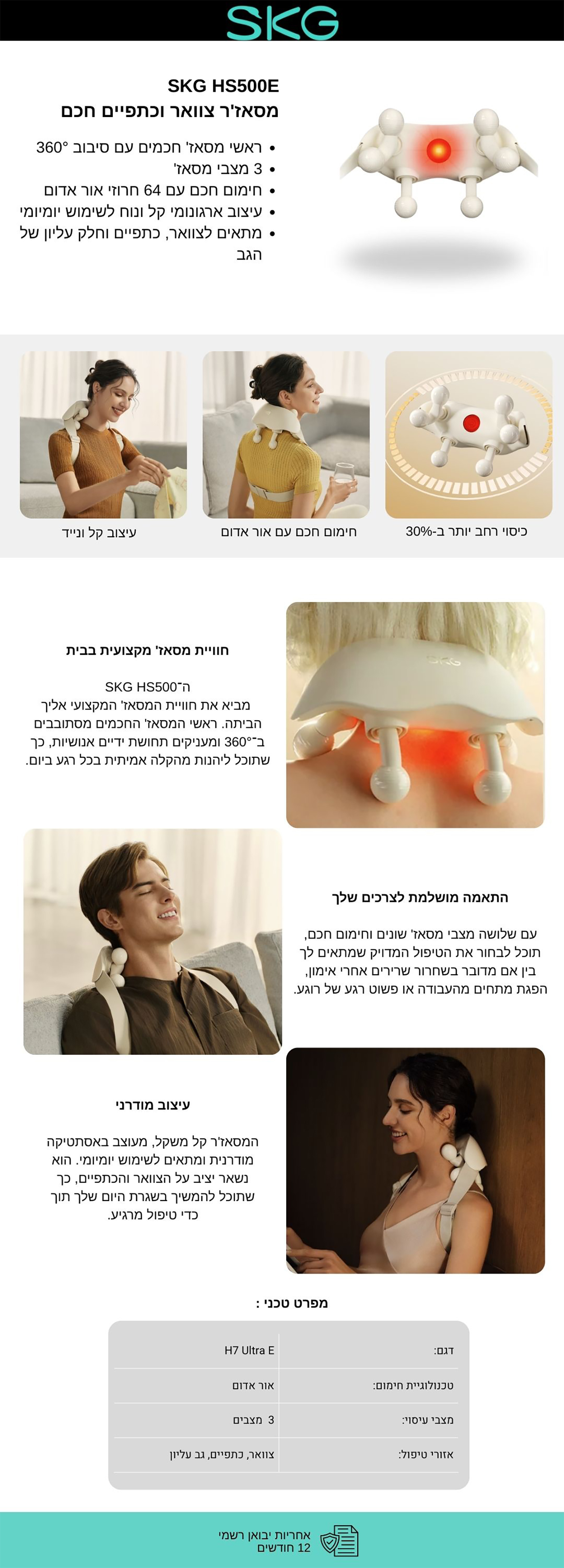 - מתאים לצוואר, כתפיים וחלק עליון של הגב