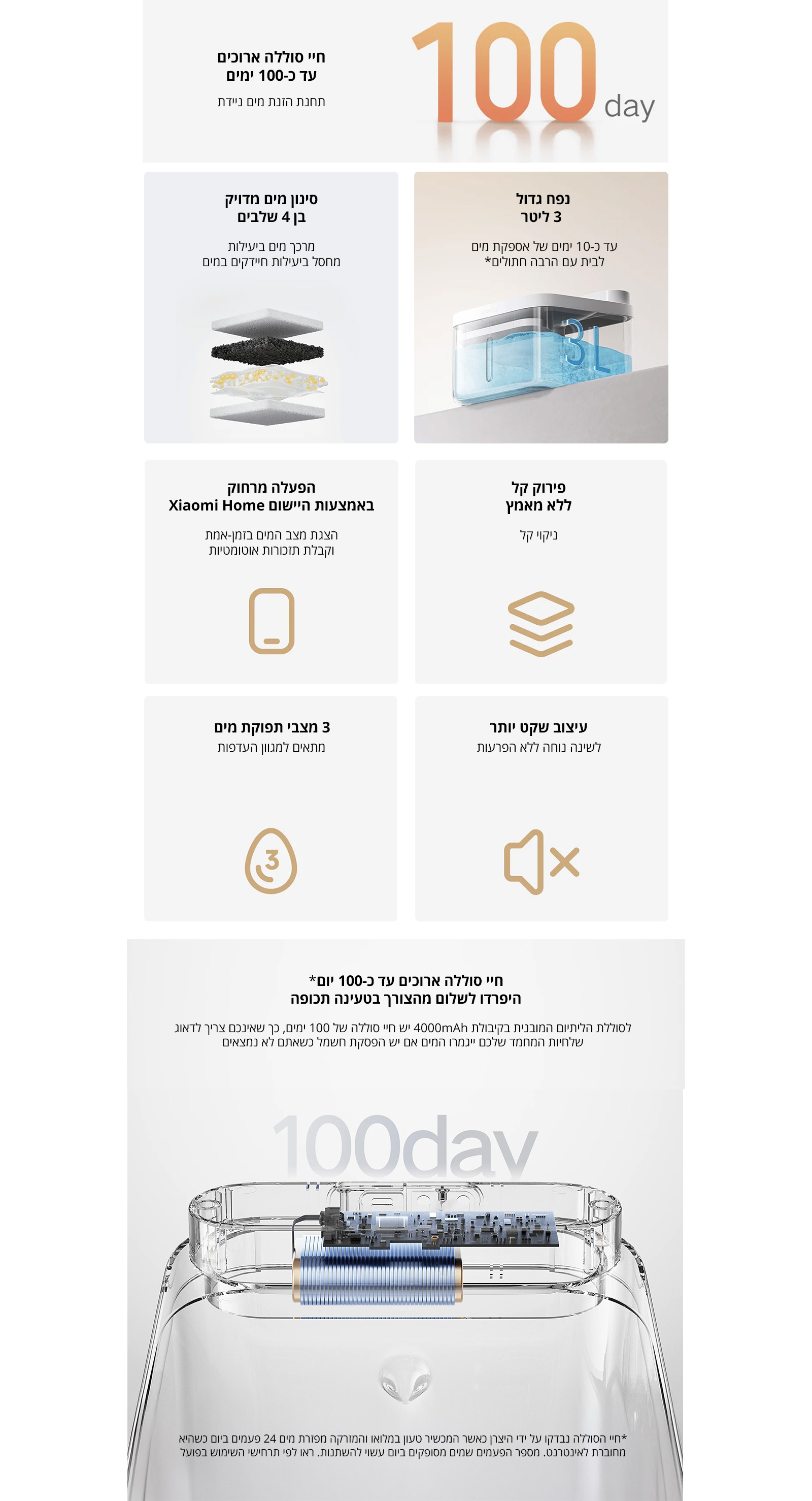 מתקן שתייה חכם לחיות מחמד Xiaomi Smart Pet Fountain 2 המותאם לחתולים וכלבים קטנים ובינוניים, שימוש רציף עד 100 ימים, מכיל 3 ליטר מים המספיקים לעד 10 ימים ושליטה באמצעות יישומון Xiaomi Home.