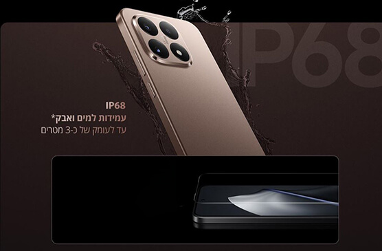 *המוצר עומד בדירוג IP68, המאפשר עמידות מוגבלת במים ואבק בתנאים מבוקרים. עם זאת, אינו מיועד לשימוש מתחת למים לפרקי זמן ממושכים או בתנאים קיצוניים. האחריות אינה מכסה נזקי חדירת נוזלים.