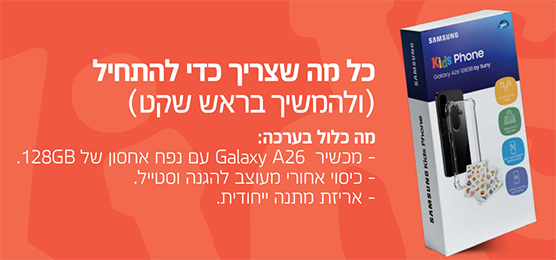 סלולר לילדים Samsung Galaxy A26 בשילוב ייחודי בין החומרה האיכותית והמוכרת של סמסונג לבין סביבה דיגיטלית מוגנת, המנוהלת במלואה על ידי ההורים, פתרון המושלם לגילאי 6-12