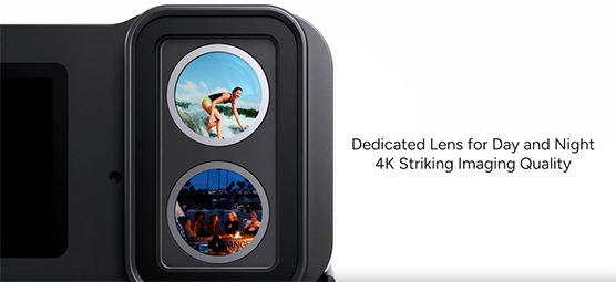 מצבי וידאו: צילום רגיל, טיים‑לפס, סלואו מושן, מצב רכב, הקלטה מחזורית (Loop), הקלטה מוקדמת, הקלטה בהשהיה, זיהוי תנועה, מצב פורטרט, צילום תמונה + וידאו בו‑זמנית | מצבי צילום תמונות: צילום רגיל, צילום אינטרוול, צילום ברסט (Burst), טיים‑לפס | עדשה: שדה ראייה 135°, צמצם f/2.0 ו‑f/1.3 (עדשת יום ו‑עדשת לילה) | ייצוב תמונה: ייצוב ג׳יירוסקופי 6‑צירי | זום דיגיטלי: 8× | פורמט וידאו: MP4 קידוד וידאו: H.264 | פורמט תמונות: JPG | איזון לבן (White Balance): אוטומטי, יום, מעונן, פלואורסנט, מצב תת‑ימי | פיצוי חשיפה (Exposure Value): ±2EV