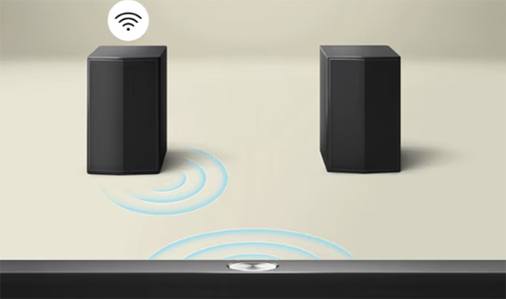 רמקולים אחוריים – כלולים באריזה – מתקינים את הרמקולים האחוריים בכל מקום בחלל, בלי לדאוג לכבלים, בזכות המקלט האלחוטי המובנה – מתקשר עם הסאונדבר באופן אלחוטי. הרמקולים האחוריים מחוברים ביניהם בכבל ממשי.